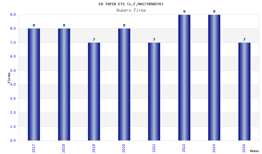 | Anno | Firme | Importi | Media | Naz. | Reg. | Prov. | Comu. |