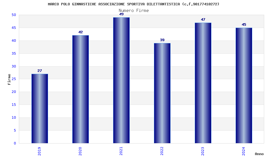| Anno | Firme | Importi | Media | Naz. | Reg. | Prov. | Comu. |