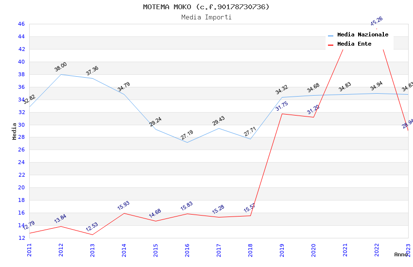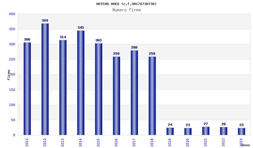 | Anno | Firme | Importi | Media | Naz. | Reg. | Prov. | Comu. |