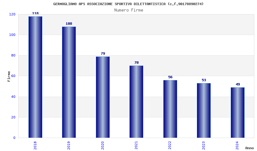 | Anno | Firme | Importi | Media | Naz. | Reg. | Prov. | Comu. |