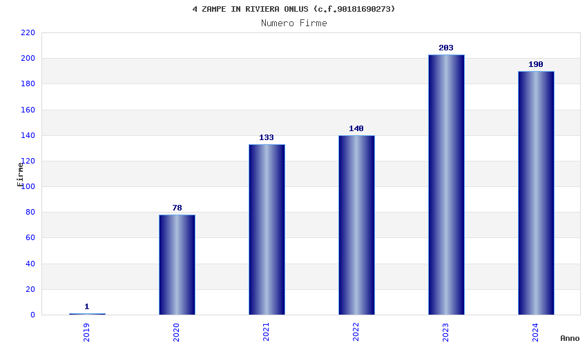 | Anno | Firme | Importi | Media | Naz. | Reg. | Prov. | Comu. |