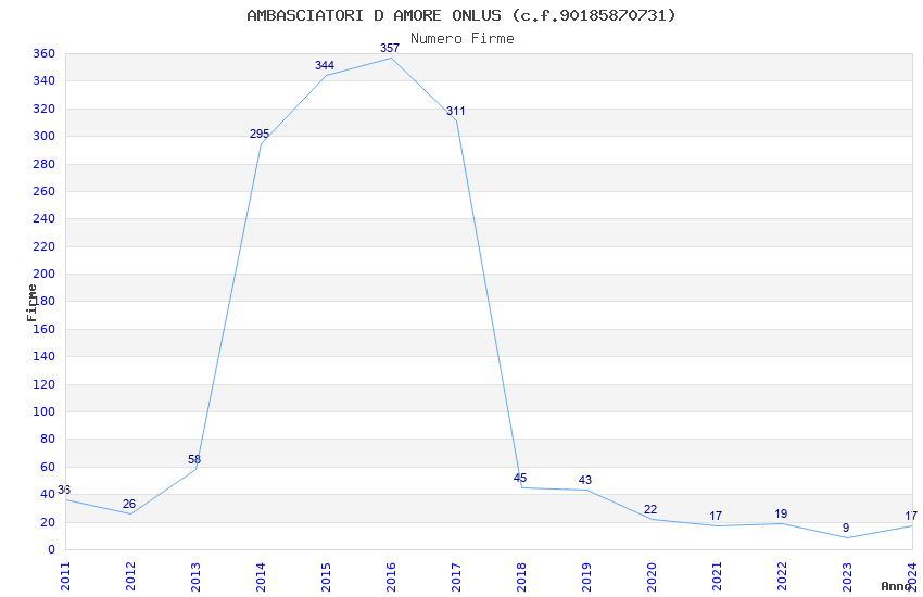 | 2016 | 357 | 5.198,29 | 14,56 | 10.544 | 489 | 72 | 4 |