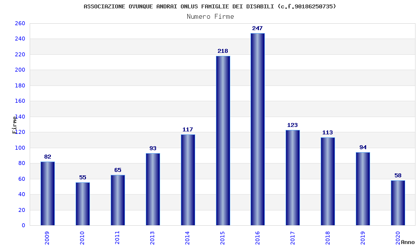 | Anno | Firme | Importi | Media | Naz. | Reg. | Prov. | Comu. |