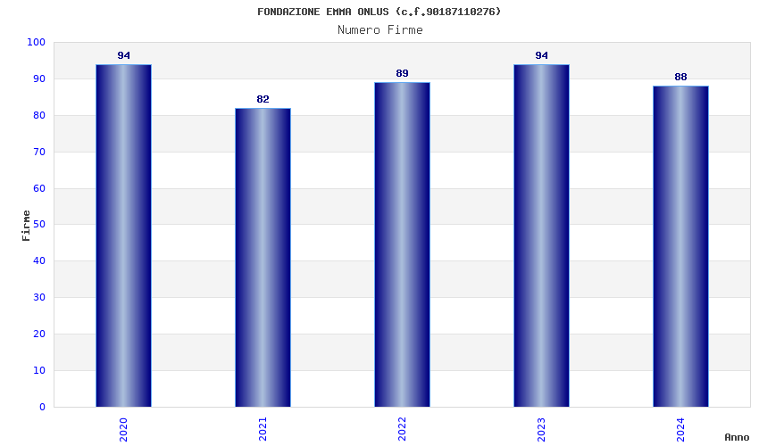 | Anno | Firme | Importi | Media | Naz. | Reg. | Prov. | Comu. |