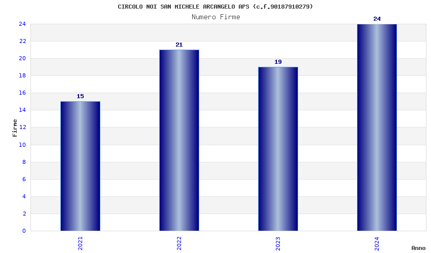 | Anno | Firme | Importi | Media | Naz. | Reg. | Prov. | Comu. |