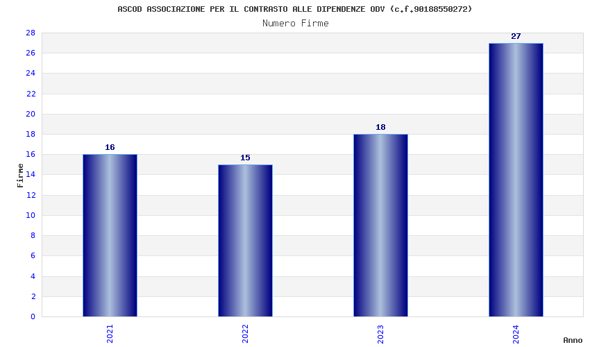 | Anno | Firme | Importi | Media | Naz. | Reg. | Prov. | Comu. |