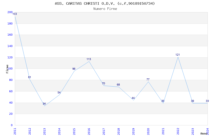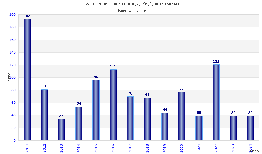 | Anno | Firme | Importi | Media | Naz. | Reg. | Prov. | Comu. |