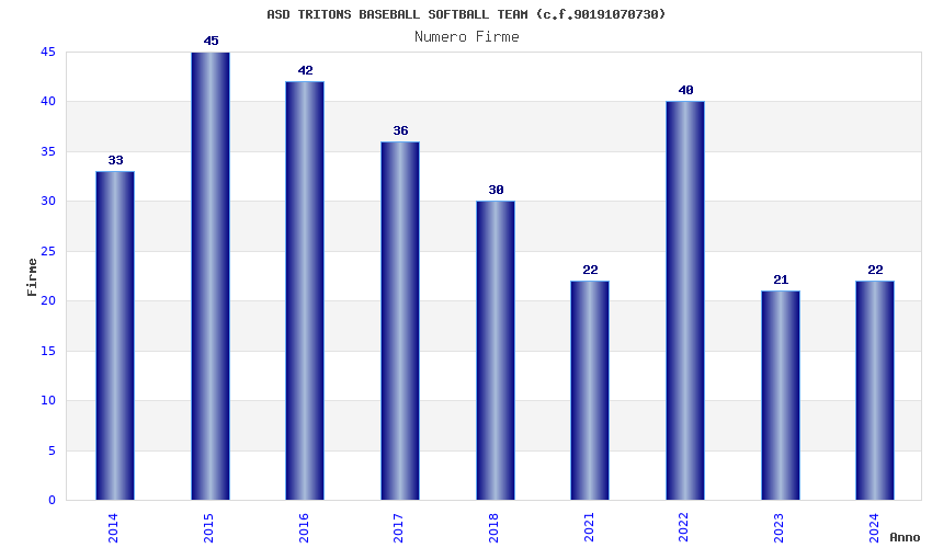 | Anno | Firme | Importi | Media | Naz. | Reg. | Prov. | Comu. |