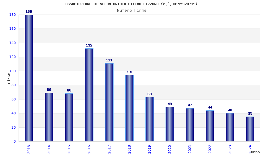 | Anno | Firme | Importi | Media | Naz. | Reg. | Prov. | Comu. |