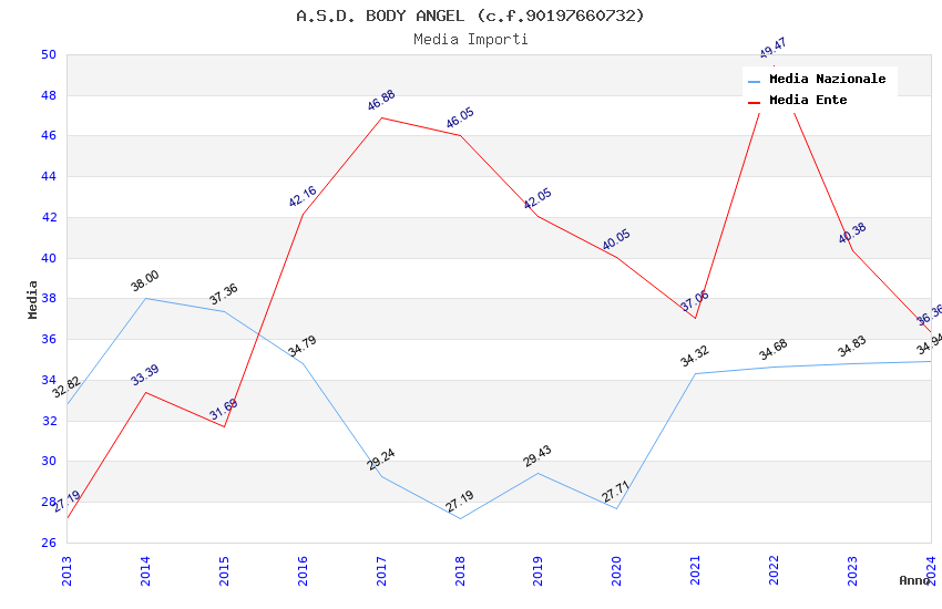 | Anno | Firme | Importi | Media | Naz. | Reg. | Prov. | Comu. |