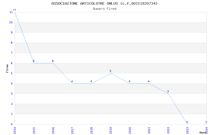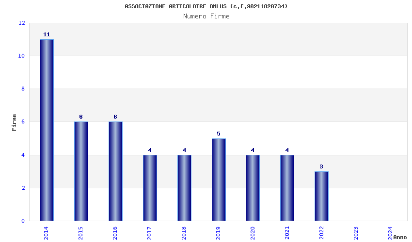 | Anno | Firme | Importi | Media | Naz. | Reg. | Prov. | Comu. |