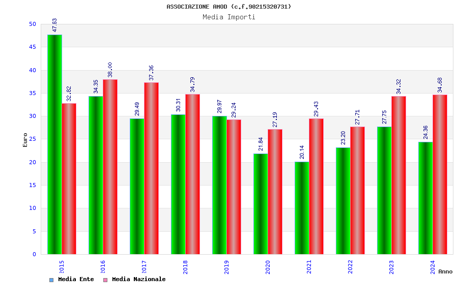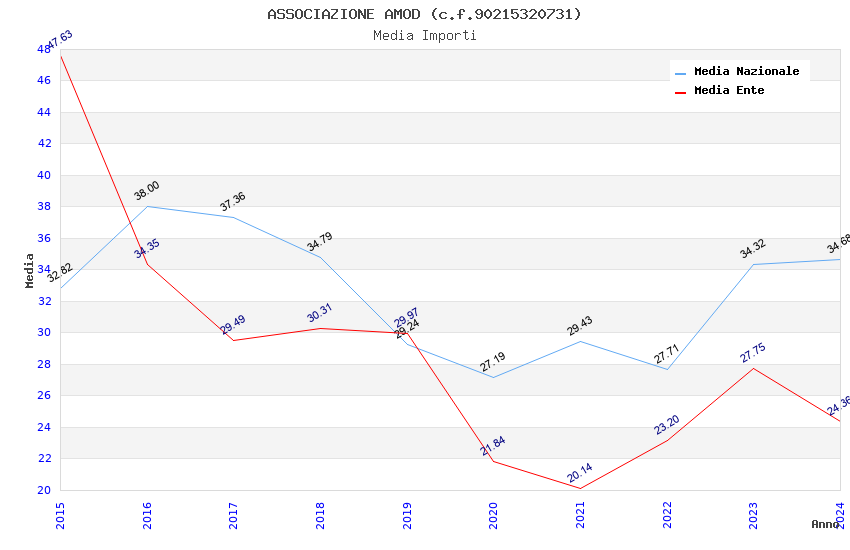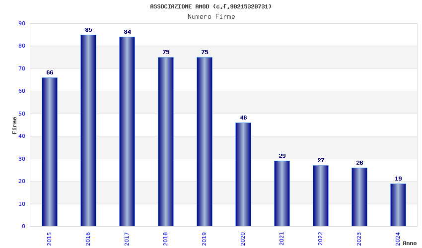 | Anno | Firme | Importi | Media | Naz. | Reg. | Prov. | Comu. |