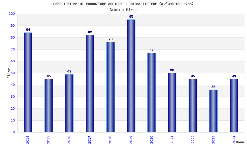 | Anno | Firme | Importi | Media | Naz. | Reg. | Prov. | Comu. |