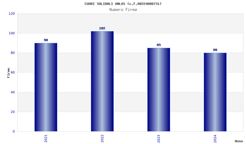 | Anno | Firme | Importi | Media | Naz. | Reg. | Prov. | Comu. |