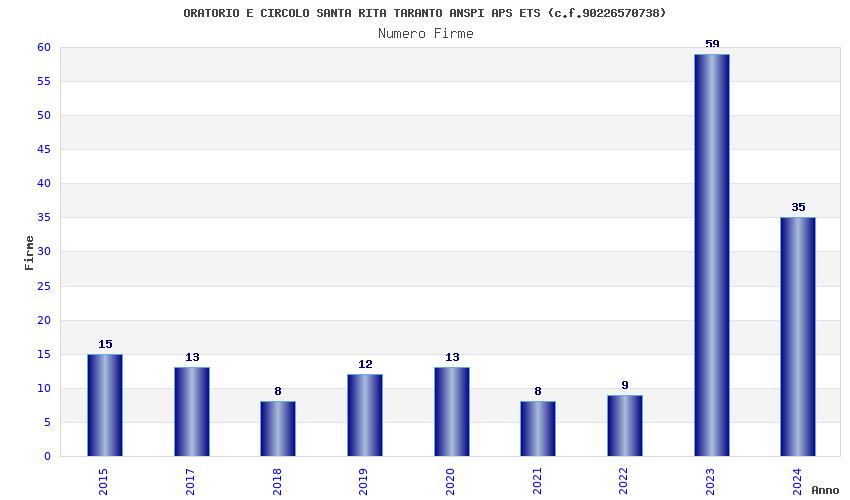 | Anno | Firme | Importi | Media | Naz. | Reg. | Prov. | Comu. |