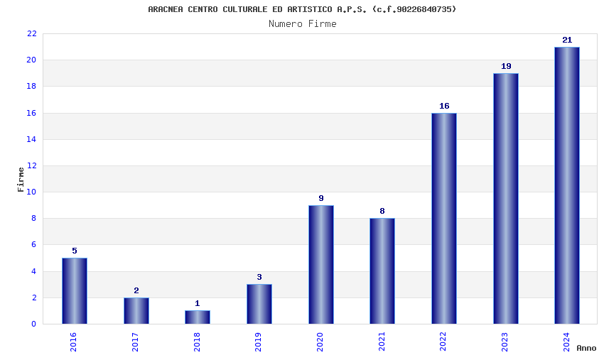 | Anno | Firme | Importi | Media | Naz. | Reg. | Prov. | Comu. |