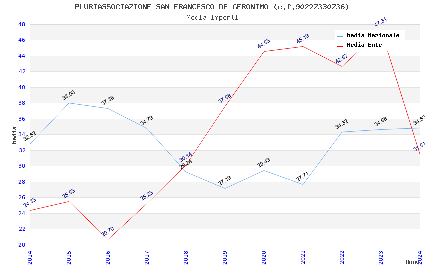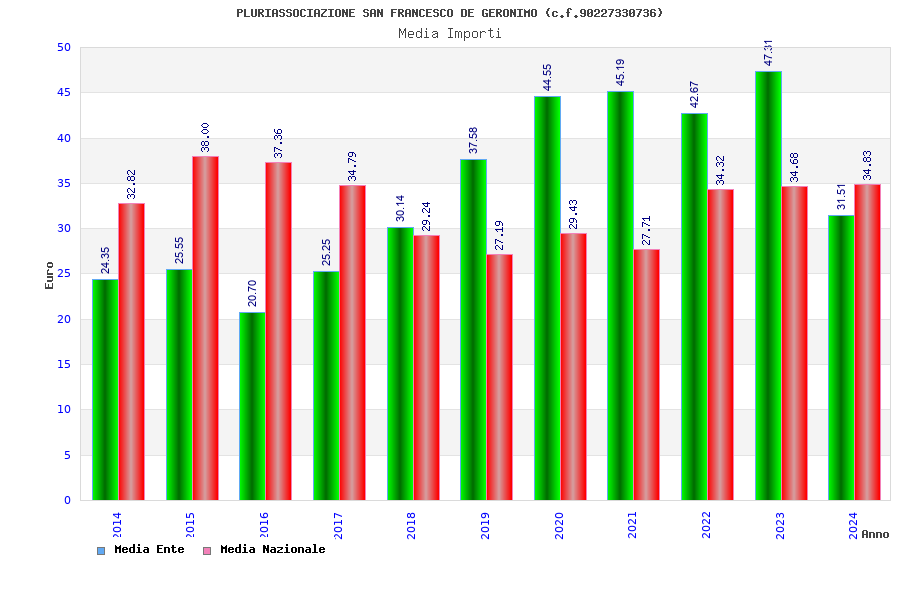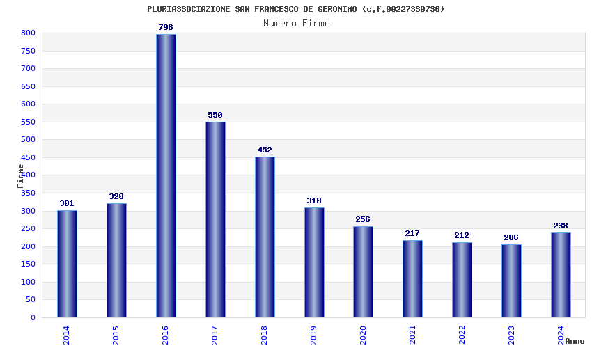 | Anno | Firme | Importi | Media | Naz. | Reg. | Prov. | Comu. |