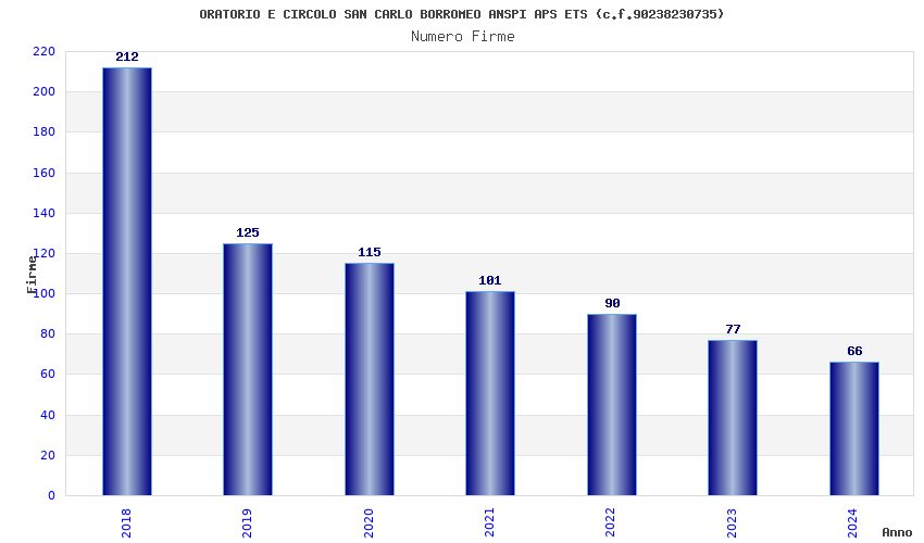 | Anno | Firme | Importi | Media | Naz. | Reg. | Prov. | Comu. |