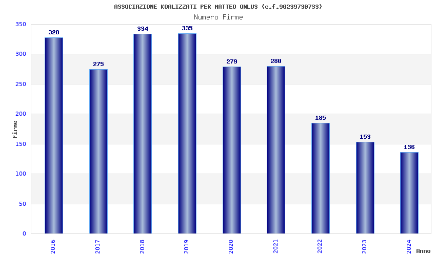 | Anno | Firme | Importi | Media | Naz. | Reg. | Prov. | Comu. |