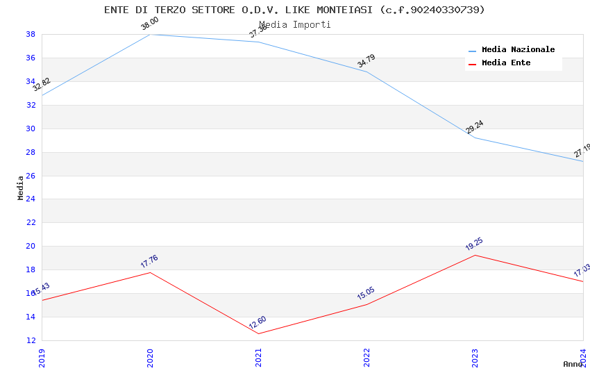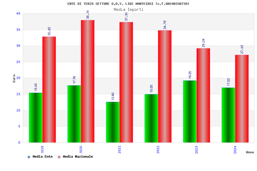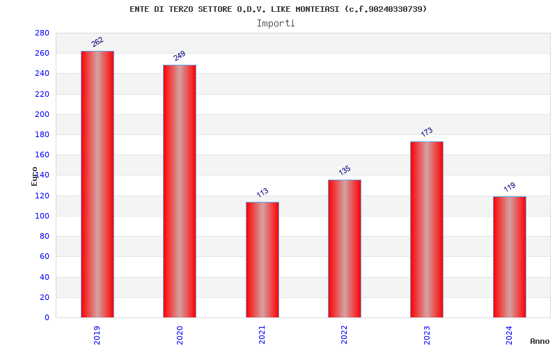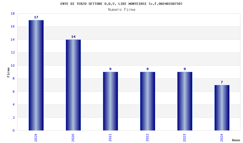 | Anno | Firme | Importi | Media | Naz. | Reg. | Prov. | Comu. |
