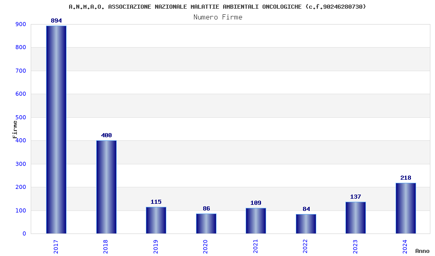 | Anno | Firme | Importi | Media | Naz. | Reg. | Prov. | Comu. |
