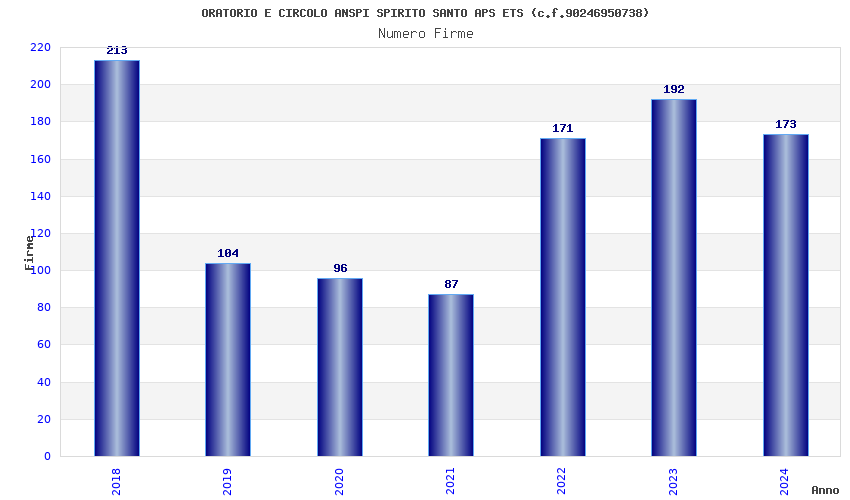 | Anno | Firme | Importi | Media | Naz. | Reg. | Prov. | Comu. |