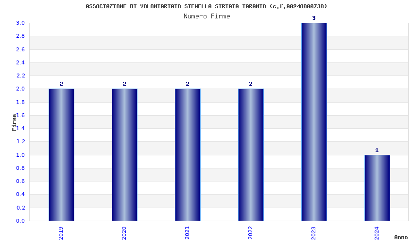 | Anno | Firme | Importi | Media | Naz. | Reg. | Prov. | Comu. |