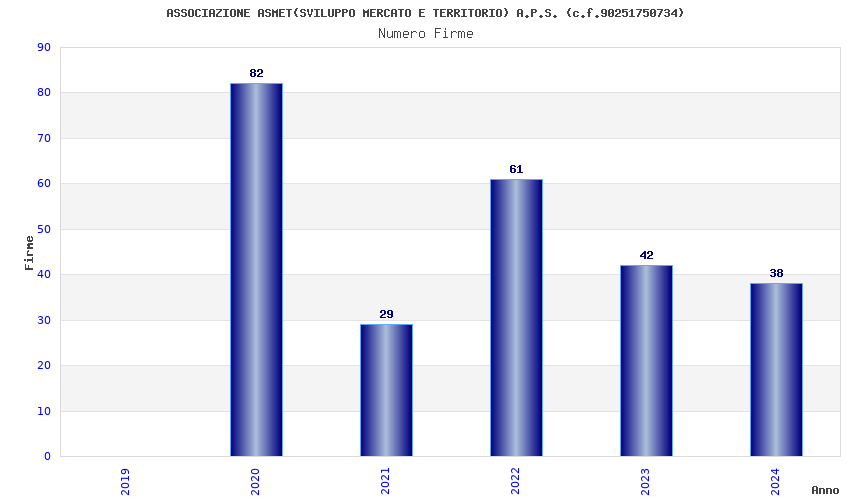 | Anno | Firme | Importi | Media | Naz. | Reg. | Prov. | Comu. |
