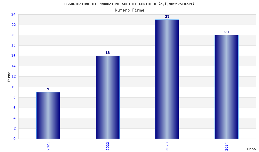 | Anno | Firme | Importi | Media | Naz. | Reg. | Prov. | Comu. |