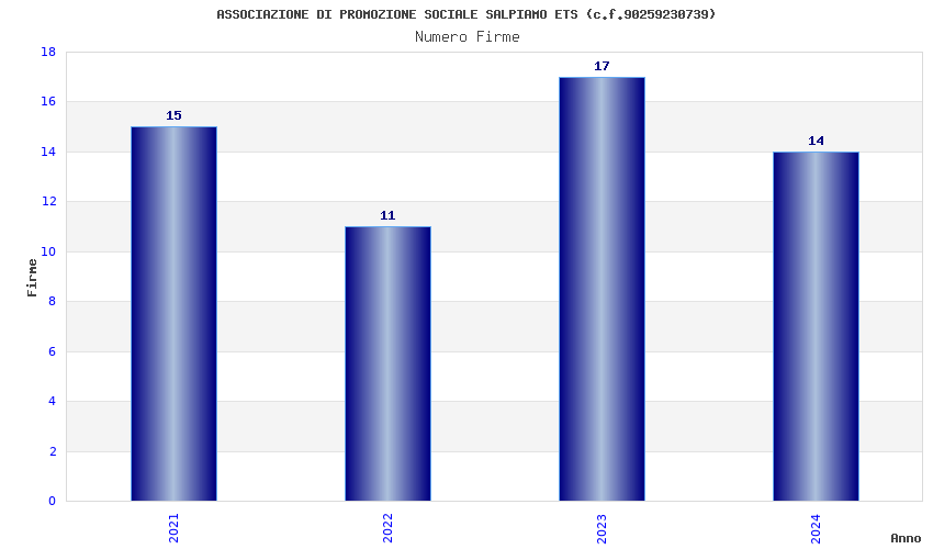 | Anno | Firme | Importi | Media | Naz. | Reg. | Prov. | Comu. |