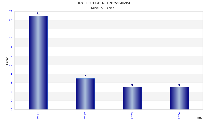 | Anno | Firme | Importi | Media | Naz. | Reg. | Prov. | Comu. |