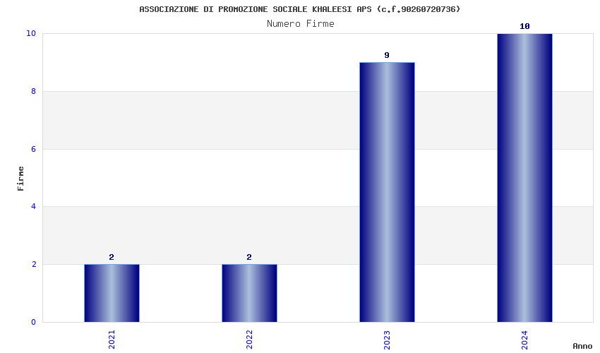 | Anno | Firme | Importi | Media | Naz. | Reg. | Prov. | Comu. |