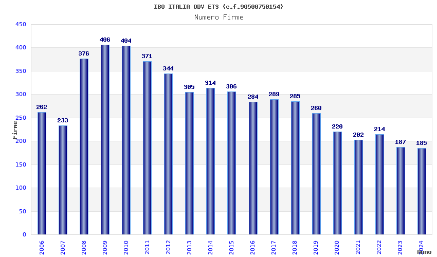 | Anno | Firme | Importi | Media | Naz. | Reg. | Prov. | Comu. |