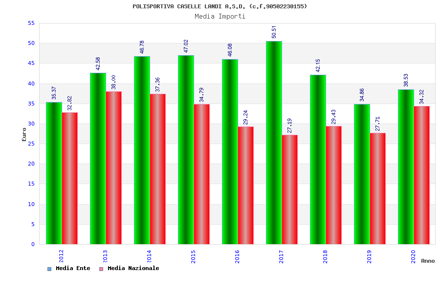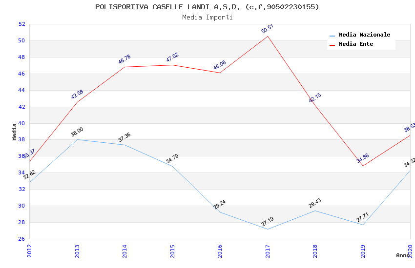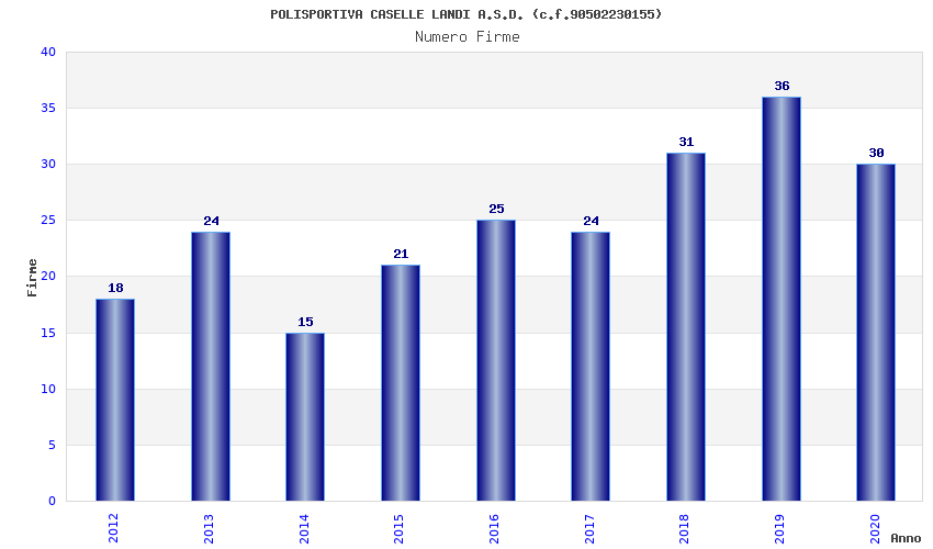 | Anno | Firme | Importi | Media | Naz. | Reg. | Prov. | Comu. |