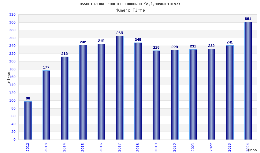 | 2017 | 265 | 7.360,40 | 27,78 | 7.332 | 1.738 | 23 | 2 |