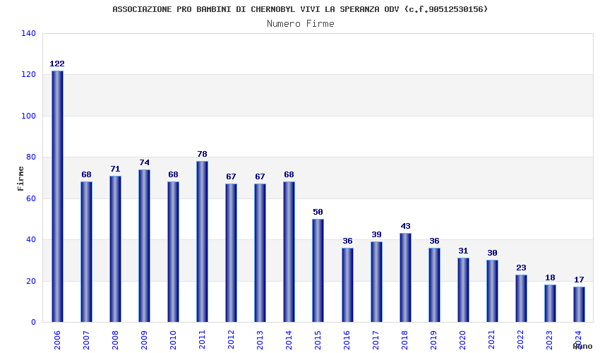 | Anno | Firme | Importi | Media | Naz. | Reg. | Prov. | Comu. |
