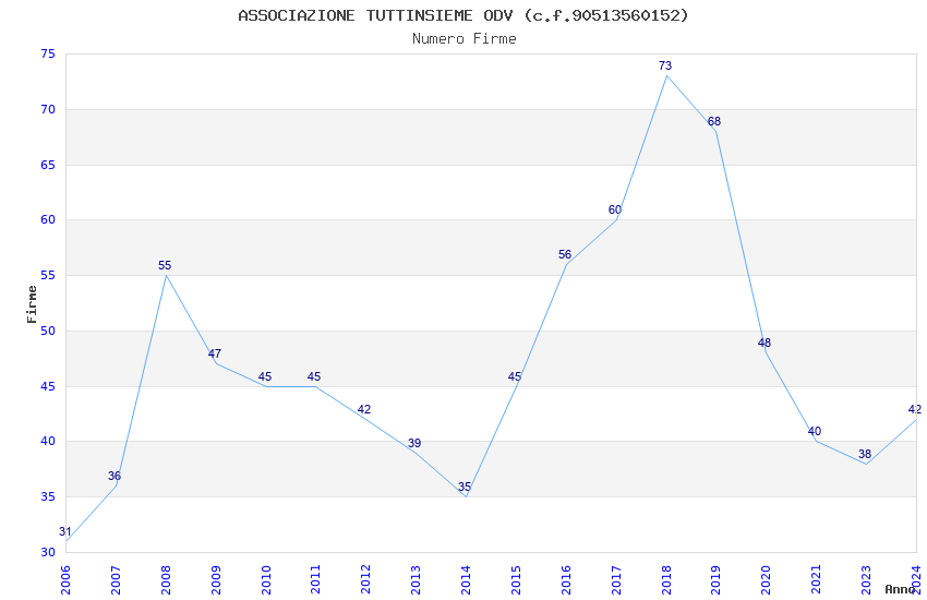 | 2018 | 73 | 2.023,09 | 27,71 | 23.503 | 5.249 | 107 | 6 |