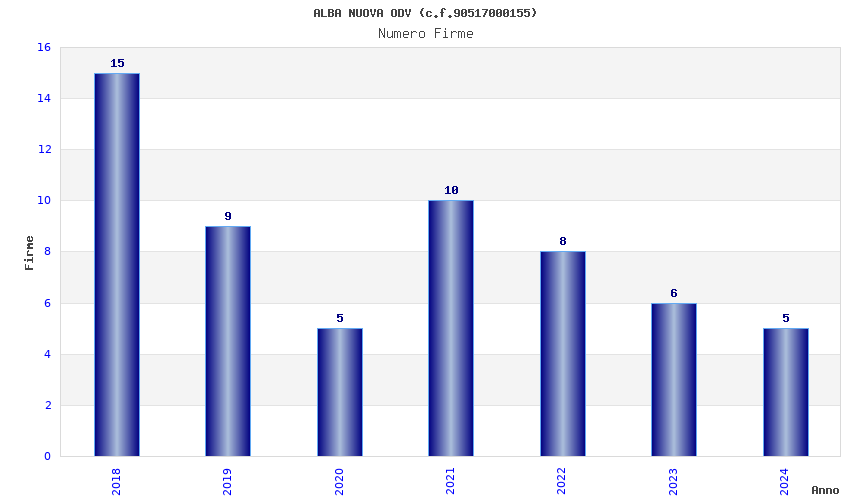 | Anno | Firme | Importi | Media | Naz. | Reg. | Prov. | Comu. |