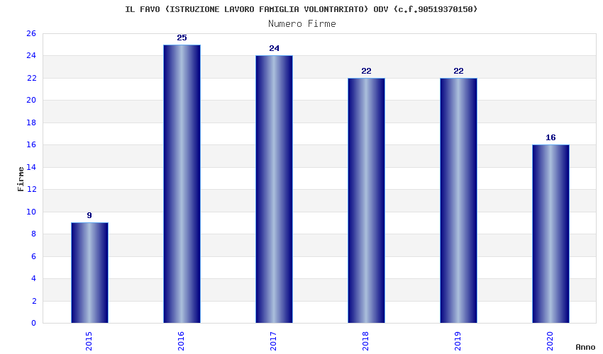 | Anno | Firme | Importi | Media | Naz. | Reg. | Prov. | Comu. |