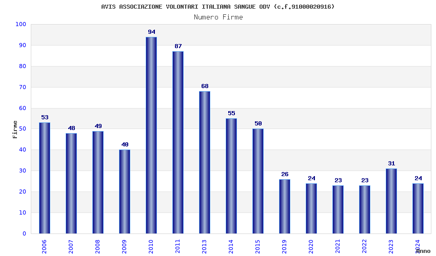 | Anno | Firme | Importi | Media | Naz. | Reg. | Prov. | Comu. |