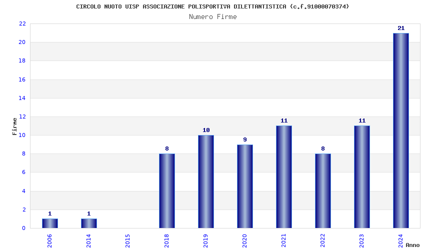 | Anno | Firme | Importi | Media | Naz. | Reg. | Prov. | Comu. |