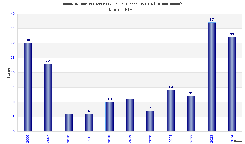 | Anno | Firme | Importi | Media | Naz. | Reg. | Prov. | Comu. |