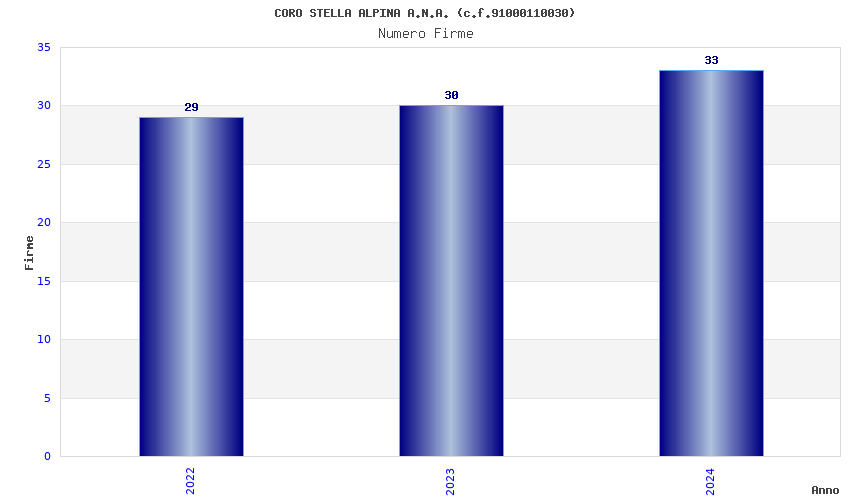 | Anno | Firme | Importi | Media | Naz. | Reg. | Prov. | Comu. |