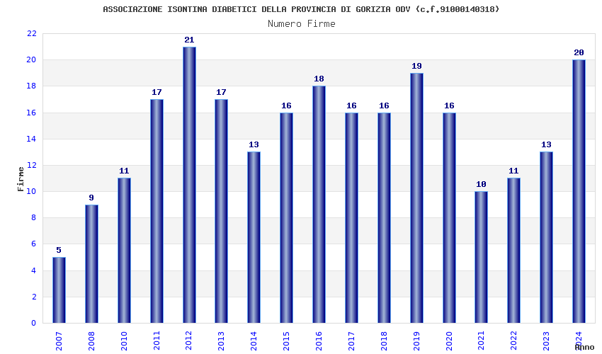 | Anno | Firme | Importi | Media | Naz. | Reg. | Prov. | Comu. |