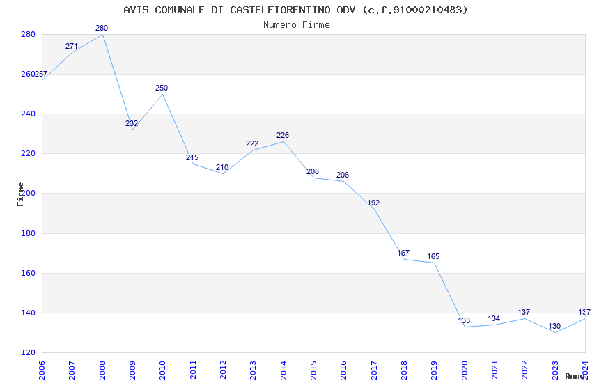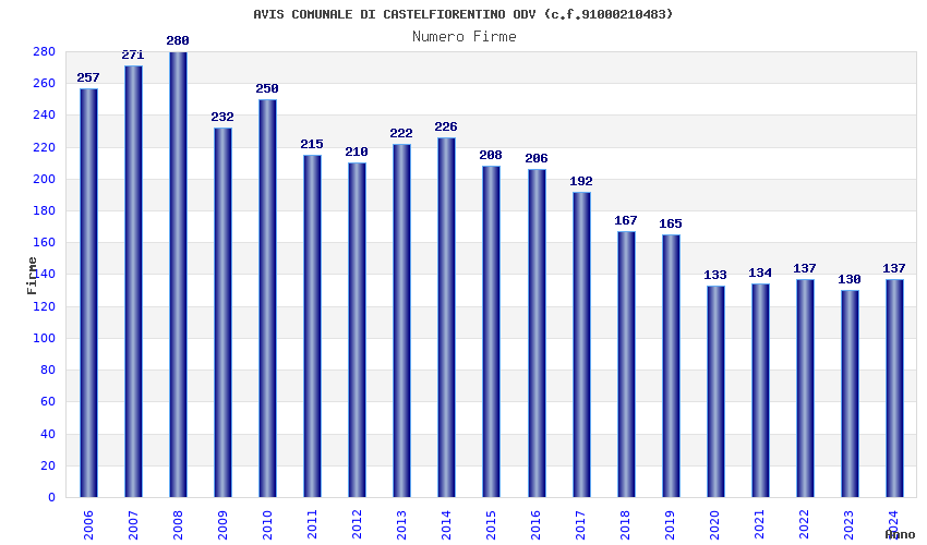 | Anno | Firme | Importi | Media | Naz. | Reg. | Prov. | Comu. |