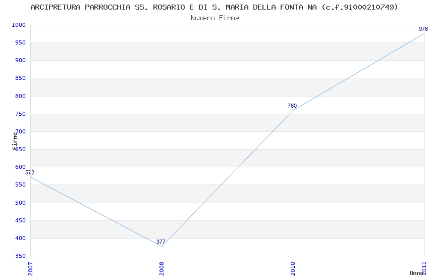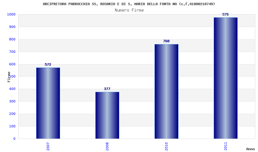 | Anno | Firme | Importi | Media | Naz. | Reg. | Prov. | Comu. |