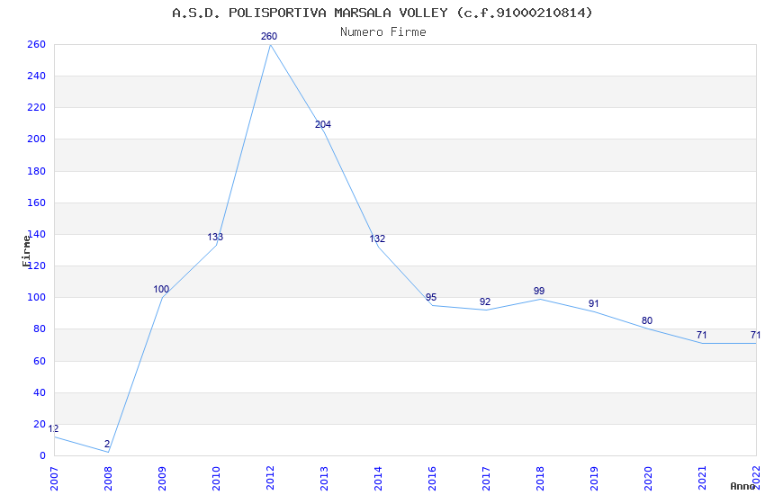 | 2012 | 260 | 5.607,93 | 21,57 | 7.816 | 423 | 31 | 5 |