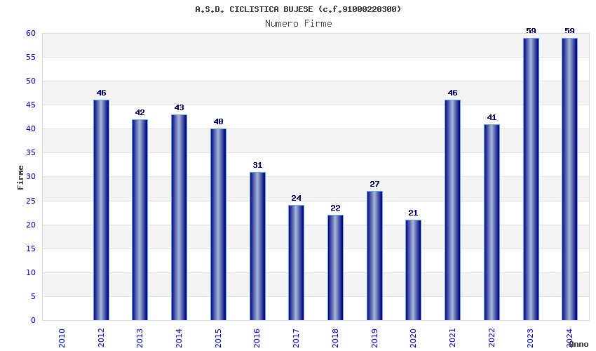 | 2023 | 59 | 2.375,22 | 40,26 | 20.818 | 464 | 213 | 2 |