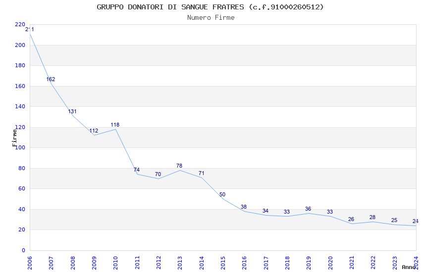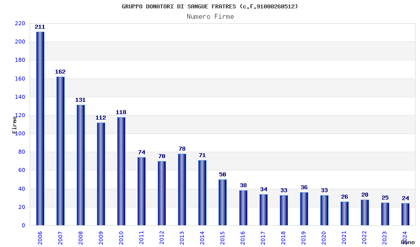 | Anno | Firme | Importi | Media | Naz. | Reg. | Prov. | Comu. |