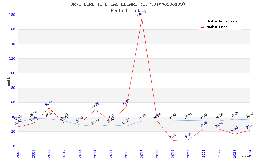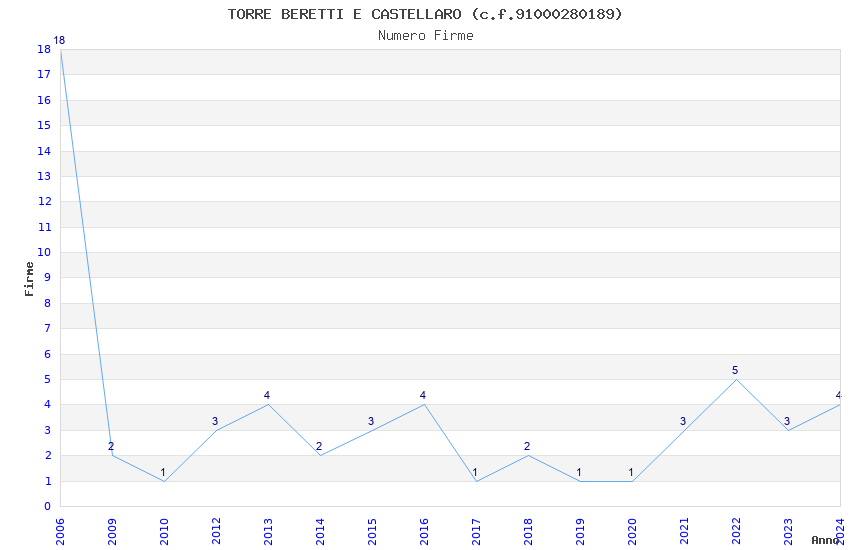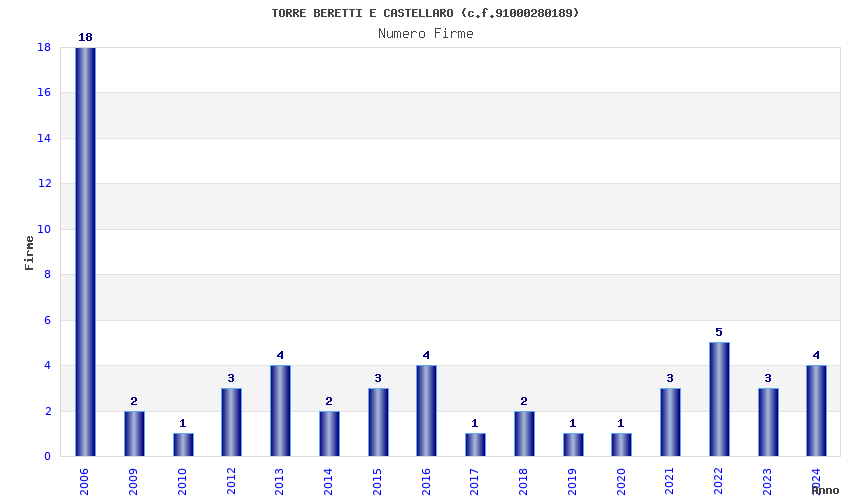 | Anno | Firme | Importi | Media | Naz. | Reg. | Prov. | Comu. |